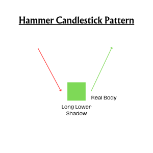A Hammer candlestick Pattern is a price pattern in candlestick which occurs when the security trading happens significantly lower than its opening price, but rallies within the period close near to opening price. This pattern is called hammer shaped candlestick pattern. In this pattern we can observe a hammer shaped candlestick in which the lower shadow is at least twice the size of the real body. The body of the candlestick represents the difference between the opening and closing prices. The shadow shows the high and low period.