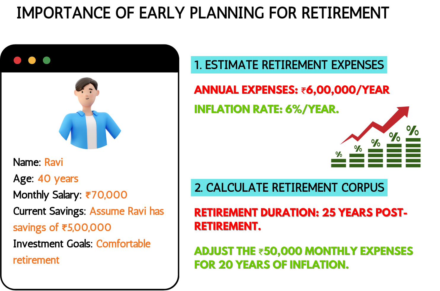 - Combat Inflation: Over time, inflation erodes the purchasing power of money. Early planning allows you to invest in assets that outpace inflation, ensuring your retirement corpus maintains its value.