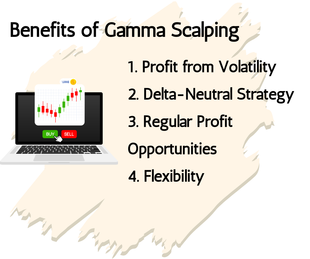 Gamma scalping offers several benefits, especially for traders who are adept at managing options and understanding the intricacies of the options market. Here are some of the key benefits: