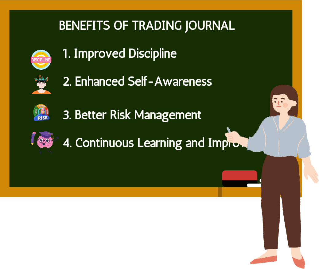 A trading journal offers various benefits. By systematically recording and analyzing trades, traders gain valuable insights into their behavior, strategies, and market conditions. Here are the key benefits of maintaining a trading journal: