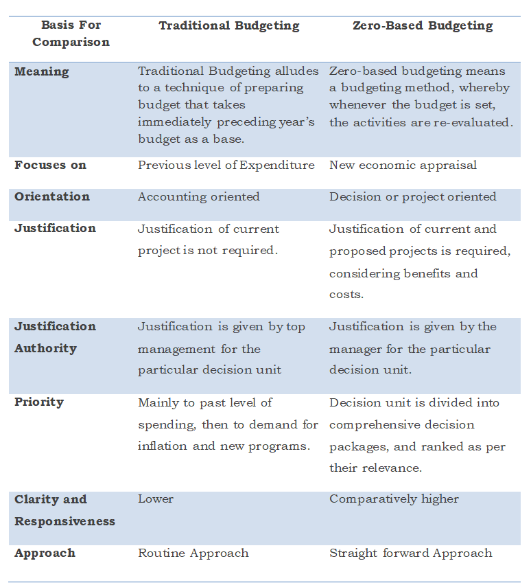 Difference between Zero-based budgeting & Traditional Budgeting